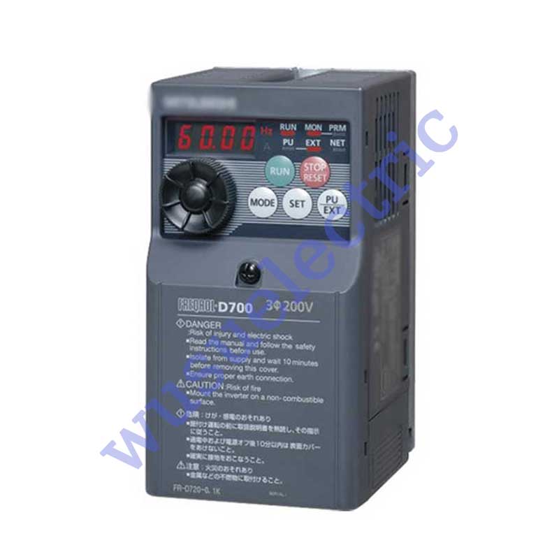 Variable Speed/Frequency Drive (VSD/VFD) / Inverter with safety stop function - EU / European specification - Mitsubishi Electric (FREQROL FR-D700 series) - input 380Vac-480Vac (3-phase/3P) - 1.5kW / 2HP - 3.6A - frequency (output) 0.2-400Hz - with Modbus RTU communication capability - IP20 - input voltage nominal values 400Vac / 415Vac / 440Vac - equivalent to FRD740036SCEC
