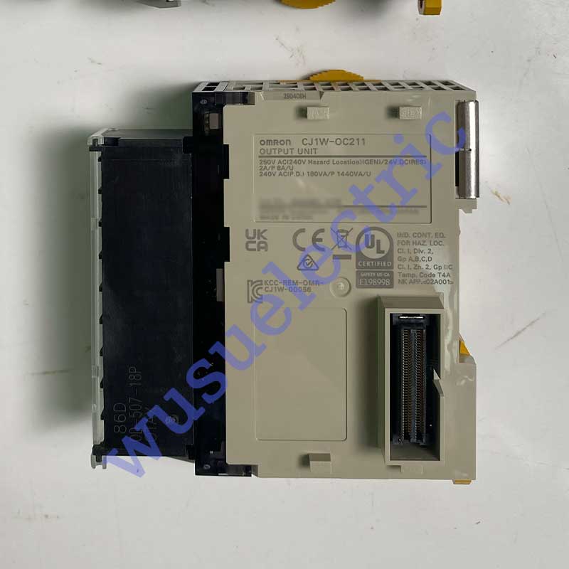 The Omron CJ1W-OC211 module is a digital output unit from the CJ series, and it was designed for industrial automation applications. With 16 relay outputs, it can handle a wide range of applications within a CJ series programmable controller. The CJ1W-OC211 output module operates at voltage ratings of 5-250 VAC or 24 VDC. Its maximum output current rating is 2 A.